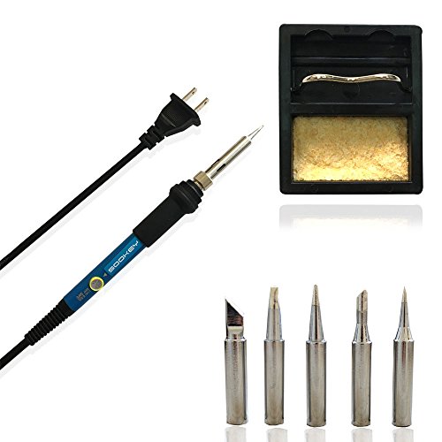 SOOKEY Soldering Iron Kit Adjustable Temperature 110v 60w with 5 Soldering Iron Tips Cleaning Sponge (Silver)
