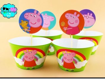 Decolandy 12 set Peppa Pig cupcake wrappers and toppers, Peppa pig party decoration,the pig decoration
