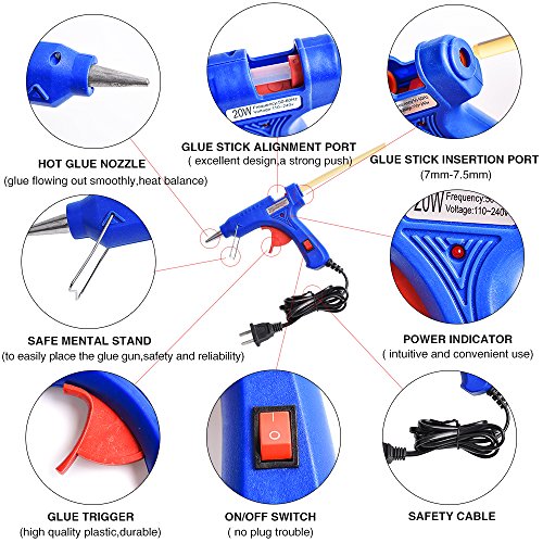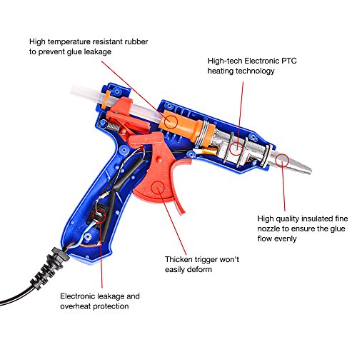 - HEATS UP QUICKLY- The heater components of this 20W glue gun are made of positive temperature coefficient resistance(PTH), heats up quickly in 3-5 minutes, saving power