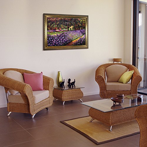 Need Help Decorating your Home? Click Here to get Inspired. Hand painted oil reproduction of a famous Monet painting, Artist's Garden at Giverny. The original masterpiece was created in 1900. Today it has been carefully recreated detail-by-detail, color-by-color to near perfection. Why settle for a print when you can add sophistication to your rooms with a beautiful fine gallery reproduction oil painting? Giverny sits on the banks of the River Seine. The village lies 50 miles Northwest from Paris, on the border next to the province of Normandy. Claude Monet noticed the village of Giverny while looking out the window of a train. In 1890 Monet bought a house and land in Giverny and created the magnificent gardens he wanted to paint. While Monet successfully captured life's reality in many of his works, his aim was to analyze the ever-changing nature of color and light. Known as the classic Impressionist, Monet cannot help but inspire deep admiration for his talent in those who view his work. This work of art has the same emotions and beauty as the original. Why not grace your home with this reproduced masterpiece? It is sure to bring many admirers. Frame Description: Elegant Wood Frame - Gold Finish.Feature