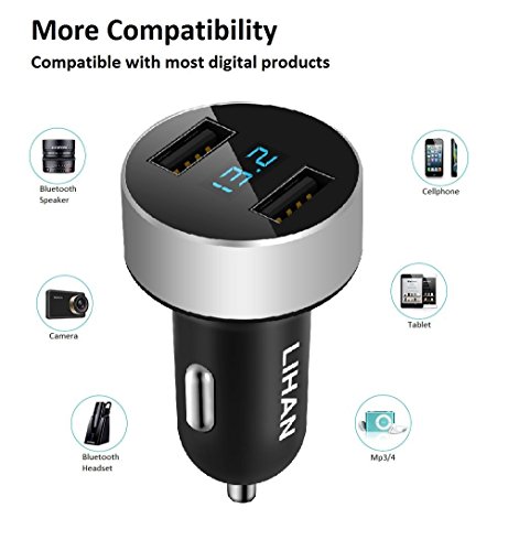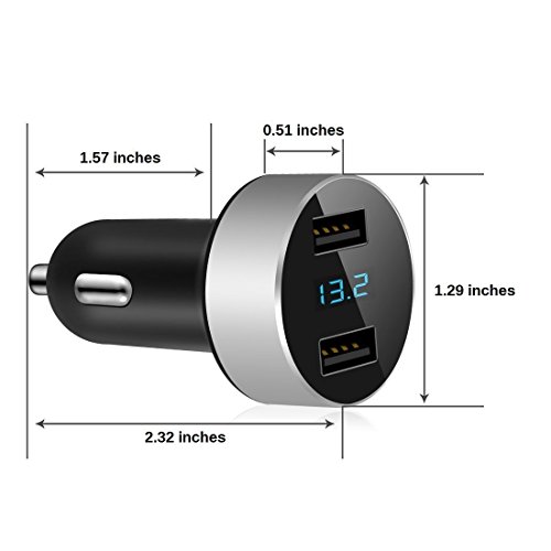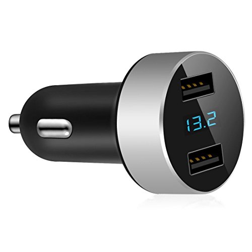 Dual USB Car Charger with LED Display Voltage and Current for iPhone,iPad,Samsung Galaxy /S Series&Edge, Sony,Google Nexus,Other iOS and Android Devices