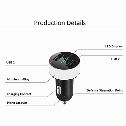 - ☑ SIEEK DESIGN: A beautiful LED, highlight metal and plastic body with piano lacquer finish, which matches aesthetic design ,gives you an awesome car charger.