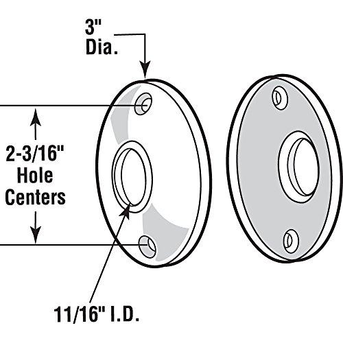 -. Feature : Polished solid brass rosettes / 3-inch outside diameter, with 11/16 inch inside diameter / 3 in. diameter / Brass plated steel screws / 2-3/16 inch hole center spacing