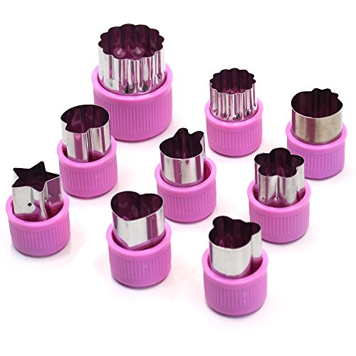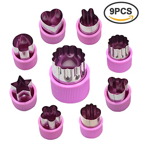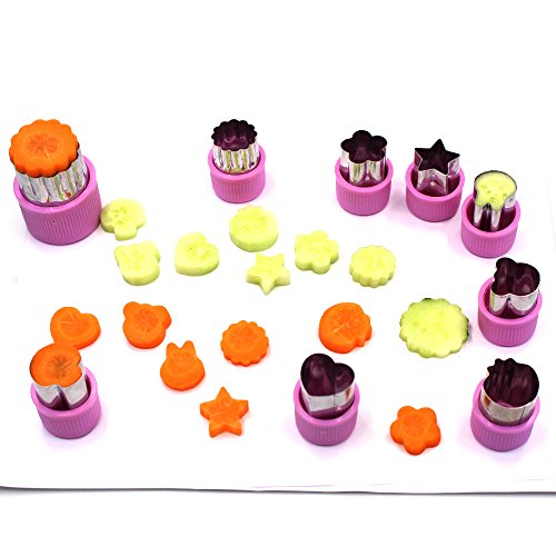 Studio : Erlvery DaMain Publisher : Erlvery DaMain Product Description They fit in adults' hands.They're a good size also suitable for children over 6 years of age, but need adult help and supervision. Vegetable cutting shapes can cut out a variety of cute shapes ,these cute shapes will be a valuable way for your kids to eat. Specifications: Color:green Material:stainless steel PP 1 Big Ones (Approx. 1.5 x 2 in/3.8 x 5.3 cm): big flower 8 Small Ones(Approx. 1 x 1.6 in/2.5 x 4 cm): small flower,sunflower,rabbit,bear, heart, star, strawberry and mushroom. Packaging included: 9pcs x food shape cutters
