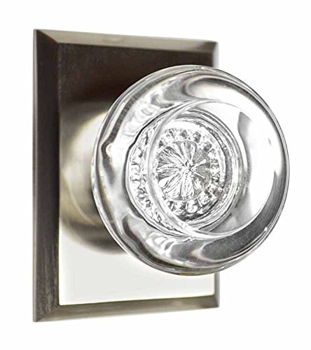 -. Title : Round Real Crystal Door Knob Set with Square Rosettes in Brushed Nickel