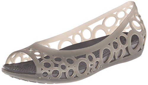Open-toe jelly flat with laser-cut upper