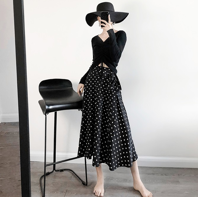 細かなドット柄を全面にあしらい、大人の女性にぴったりのレトロな可愛さを引き立てます。
