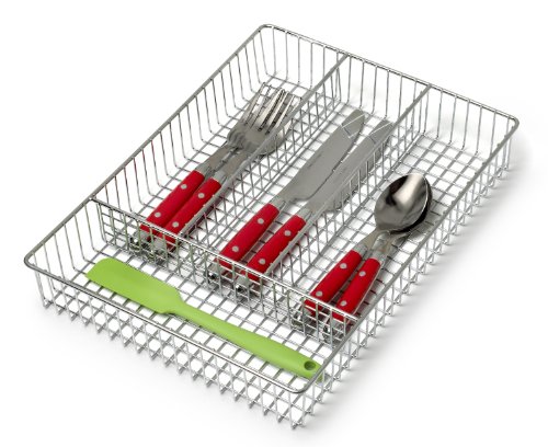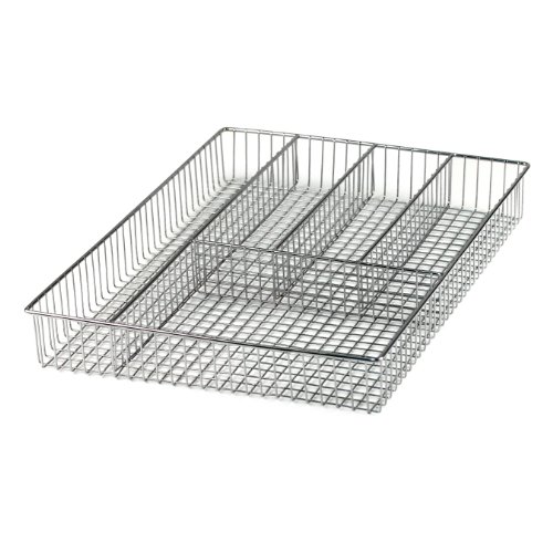 Durably designed, this attractive in-drawer flatware tray features sturdy steel-mesh construction. Its five sensibly shaped compartments fit a multitude of tools while maximizing drawer space. The tray is made of steel wire with chrome plating. With its clean, contemporary styling that will complement any decor, the space-efficient drawer organizer should be washed by hand. Spectrum products incorporate original designs created by and for the exclusive use of Spectrum.  Most of Spectrum’s products are protected by intellectual property rights including issued, pending or in-process design patents.  Protection for certain products may be provided and/or augmented by other federal and state proprietary rights  including trademark, trade dress and copyright rights in the appearance and design of the products. 16"L x 11.25"W x 2"H