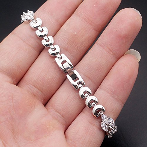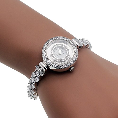 Women Wristwatch Silver Cubic Zircon Stainless Steel Links Bracelets Jewelry Watch Gifts 7.5"