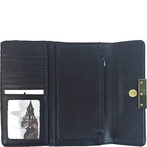 -. Brand : London Fog Handbags -. Department : womens -. Feature : London Fog tri-fold wallet with magnetic snap and shiny gold foil embossed flap -. Label : London Fog Handbags -. Manufacturer : London Fog Handbags -. PackageQuantity : 1 -. ProductGroup : Shoes -. ProductTypeName : HANDBAG -. Publisher : London Fog Handbags -. Studio : London Fog Handbags -. Title : London Fog Handbags Lark Wallet