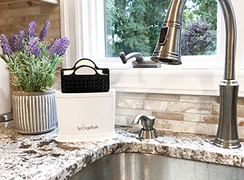 SpongeBath Patented Kitchen Sponge Cleaner & Sponge Holder, Kills 99.99% of odor-causing Bacteria, Sponges Lasts 4X Longer, Starter Kit includes 2 month supply of Concentrated Cleaning Solution