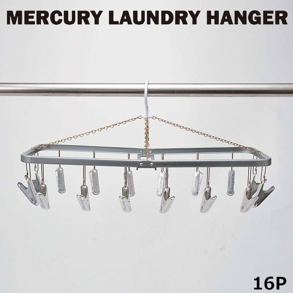 クリップが16個付いています。使わないときは半分に折り畳めるのでコンパクトに収納できます。 製造国:日本 素材・材質:スチール、アルミ 商品サイズ:W51.5×H28×D20cm ※サプライヤー直送品 ご注文後5~6営業日後の出荷となります【商品名】キーストーン マーキュリー ランドリーハンガー16P MELAHA16