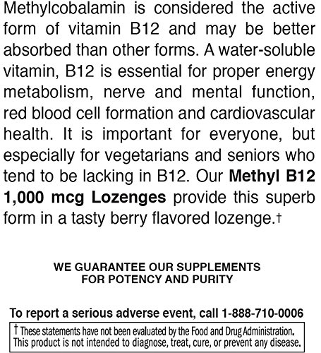Natural Nutra offers a premium quality Methyl B12 lozenge which is vegetarian, vegan, and gluten free. There are no artificial colorings, flavorings, preservatives, wheat, milk, eggs, peanuts, tree nuts, crustacean shellfish or fish.