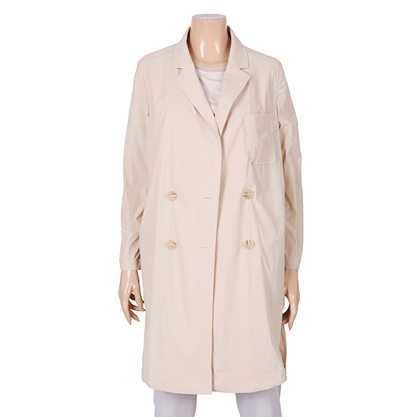 이 제품은 기본형의카라에심플함과 긴팔소매 앞섶의더블단추와 박스스타일의 편안함과 체형커버가되며