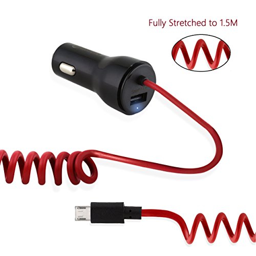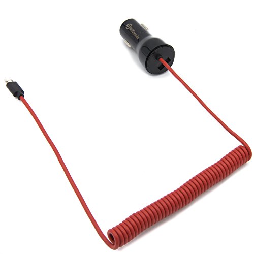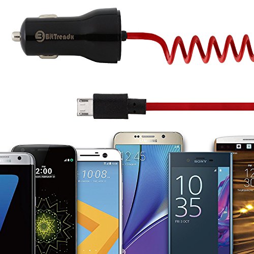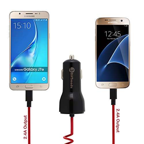 BitTrendx, Fast Adaptive Smart IQ+ Car Charger With Tangle-Free Coiled Micro USB Cable for Samsung Galaxy S7 S6 S5 S4 S3 J7 Prime Google Nexus 5 7 and Additional USB Port (Black)