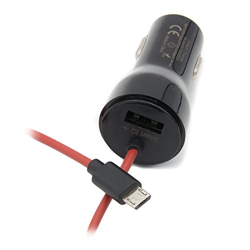 Dual Port USB Car Charger: the built-in micro USB cable charges HTC, Blackberry, MP3 Players, Digital Cameras, PDAs, Mobile Phones, and Samsung Galaxy S3 S4 S5 S6 S7 Note 2 Note 3 Note 4 Motorola Droid Razr Maxx, Moto X, LG G2, HTC ONE, DNA; the other USB port can charge Apple iPhone/iPad/iPad Mini/iPad Air. (apple charging cable not included).