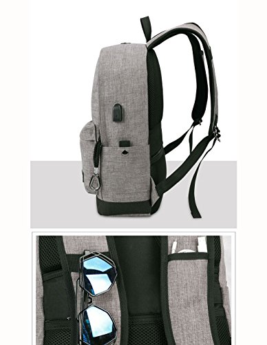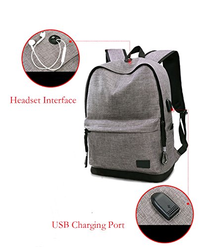 Lmeison Laptop Backpack, Business Tablet Bags with USB Charging Port and Headphone Port Anti-theft School Book Bag for College Travel Daypack, Gray