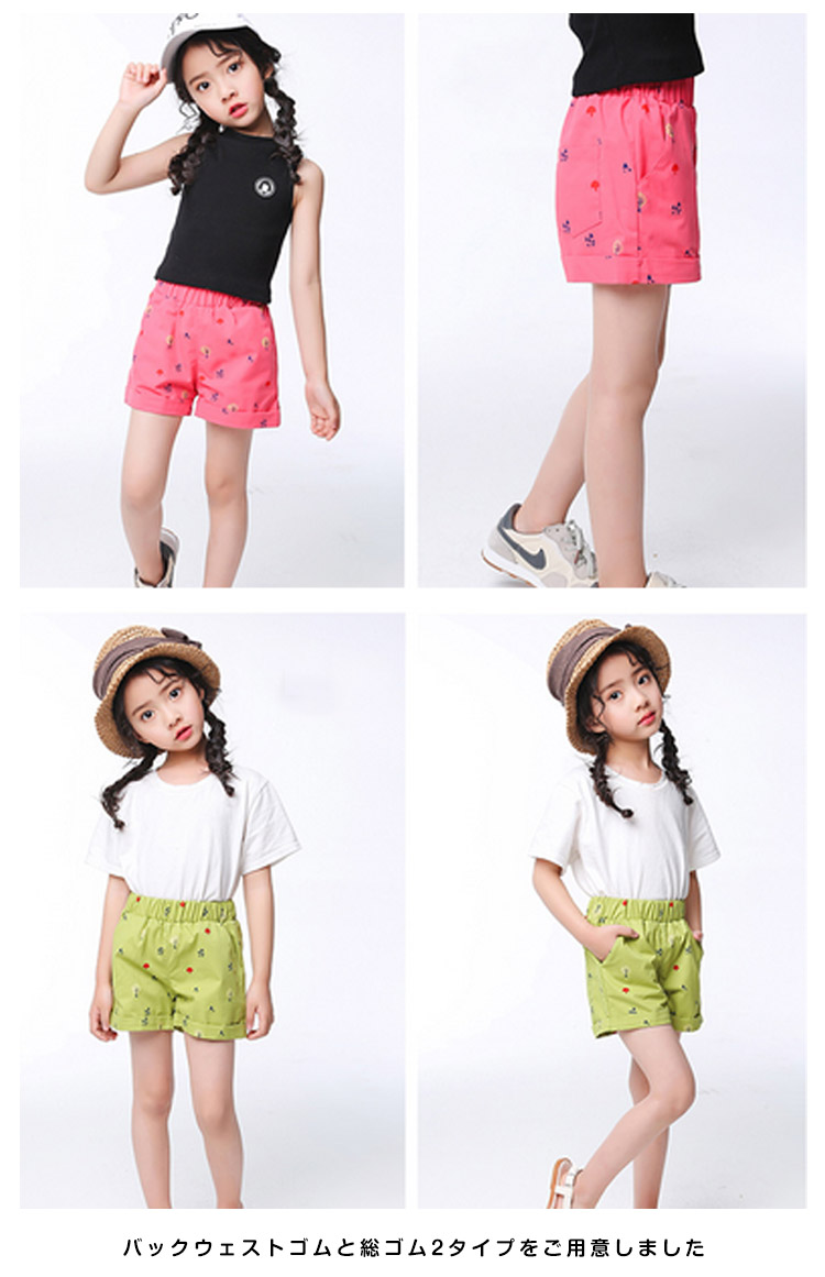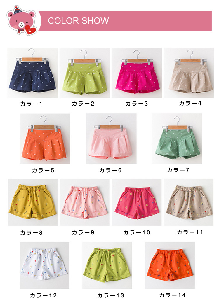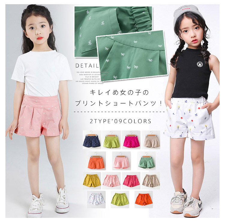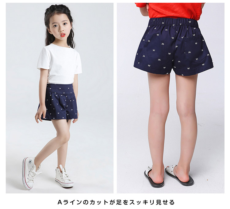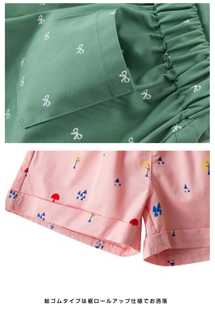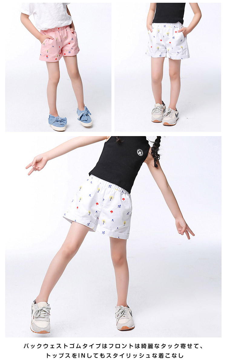 | キレイめ女の子のプリントショートパンツ!コットン生地で肌触り&通気性バツグンAラインのカットが足をスッキリ見せるバックウェストゴムと総ゴム2タイプをご用意しましたバックウェストゴムタイプはフロントは綺麗なタック寄せて、トップスをinしてもスタイリッシュな着こなし | |