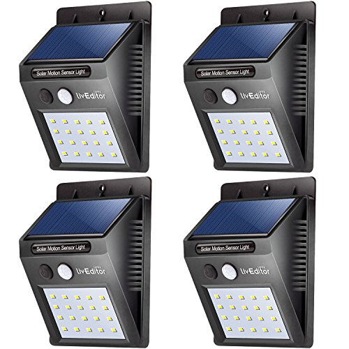 20 LED Solar Lights Outdoor,LivEditor Waterproof Solar Powered Motion Sensor Light Wireless Security Lights Outside Wall Lamp for Driveway Patio Garden Path - 4 Pack