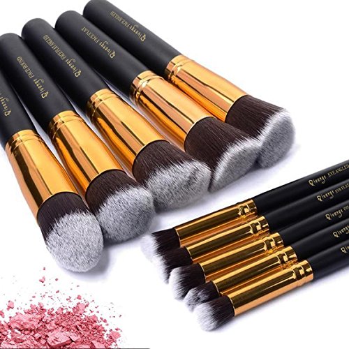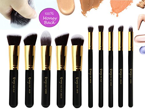 QIVANGE Premium Professional Synthetic Kabuki Makeup Brush Set Cosmetic Foundation Eyeshadow Blush Concealer Powder Brush Makeup Brush Kit (10pcs)