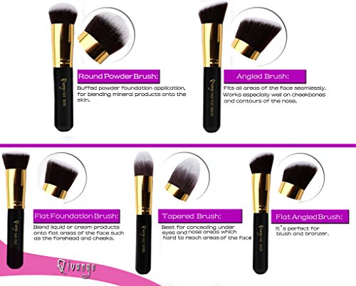 Qivange Premium Professional Synthetic Kabuki Makeup Brush Set Cosmetic Foundation Eyeshadow Blush Concealer Powder Brush Makeup Brush Kit(10pcs) Function of every brush: 1. Round Powder Brush: Buffed powder foundation application, for blending mineral products onto the skin.