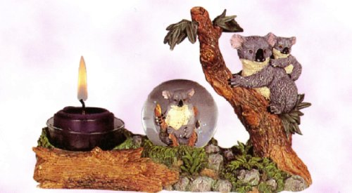 Candle Holder Centerpiece Koala with Baby Bear Tea Light Votive Candle Holder with Mini Snow Globe. Resin. 4 1/2" High.