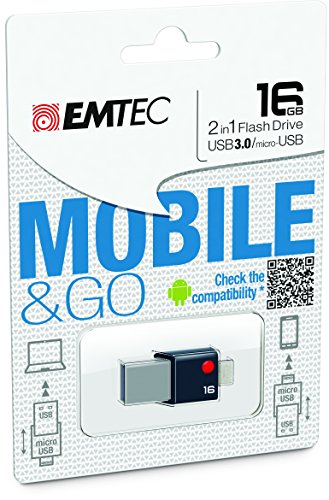 EMTEC Mobile & Go 2 in 1 Flash Drive with USB 3.0 and Micro-USB, 16 GB