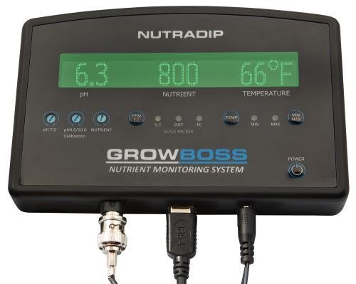 - The grow boss is a constant monitoring meter that indicates to the grower the exact levels of nutrient strength, pH and temperature