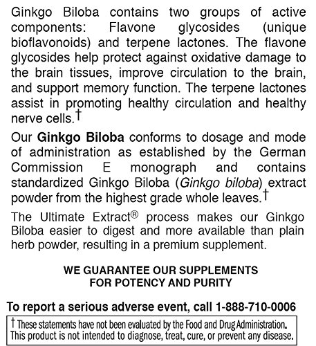 BPA-FREE GLASS BOTTLES — We seal your supplements in environmentally friendly amber glass bottles enclosed in heat-sealed sleeves. Each bottle contains 60 vegetarian Gingko biloba supplements.
