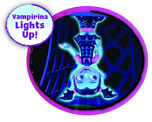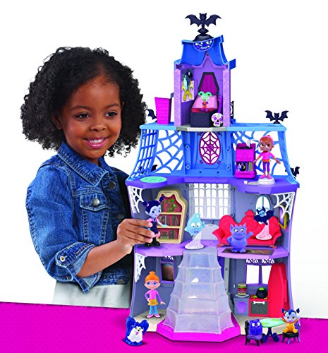 -. Feature : Place Vampirina on 6 special spots located on each floor throughout her house- and watch her glow! She can even hang upside down when she’s feeling a little batty! Her BFF Poppy is included, allowing little ones to play out the stories and silly adventures right from the show! Ages 3+ / Vampirina Scare B&B Playset stands 26” tall when fully extended and features 3 floors. / Playset looks just like the Scare B&B from the show! / Set includes one 3.5” Ghoul Glow Vampirina figure and Poppy figure. / Book case transforms into guest bed. / Food magically rises in the kitchen. / Includes telescoping bedroom tower with portraits that grow as the tower is extended up. / Inspired by the new Disney Junior series, Vampirina, the Scare B&B Playset is three floors of spook-tacular fun! From the secret reveal telescoping bedroom tower with magically growing portraits, to the bookcase that transforms into a guest day bed, there’s always something special brewing at Vampirina’s house! Magically rising food in the kitchen, a record player that moves and shakes when Vampirina dances and a 360° spinning TV in the living room are just some of the spook-tacular surprises that await you on each floor.