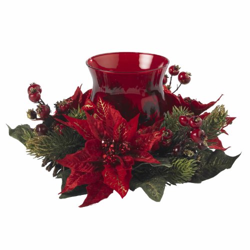 Nearly Natural 4920 Poinsettia and Berry Candleabrum, Red