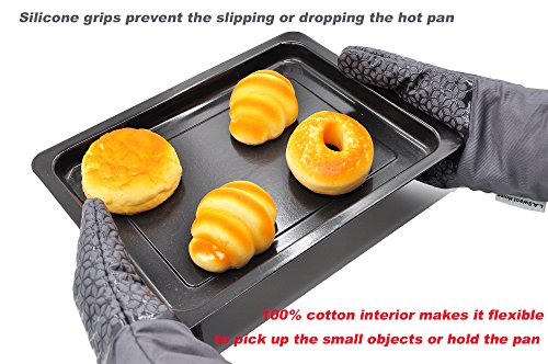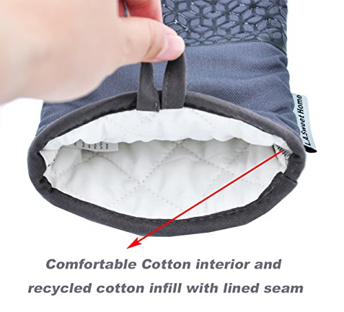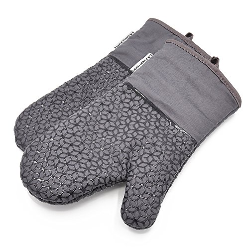LA Sweet Home Silicone Oven Mitts Flower Pattern Heat Resistant Pot Holders for Kitchen Oven, BBQ Grill and Fire Pits - Ideal for Cooking, Baking, Grilling - Non-Slip Grip (Grey) 1 Pair