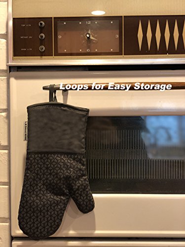 - EASY TO CLEAN & STORE – Each pair of oven gloves is extremely easy to clean, super durable and features a cotton loop inside so they can be hung in a cabinet, near the grill or in a pantry. Wash with warm, soapy water in between uses.