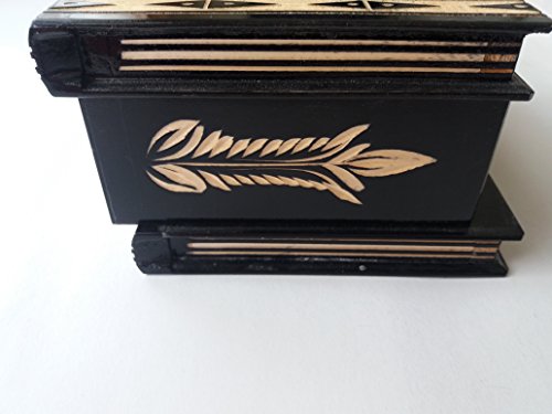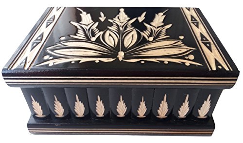 -. Feature : Handmade wooden magic secret mystery puzzle box with secret compartment inside / Is a puzzle box and brain teaser , IQ developer it is a genuine and popular gift for your loved ones , gift for all ages / Wooden case with mirror, or jewelry box or storage box for your special things or jewellery / Handmade handcrafted and handcarved by a talented handcrafter , has a special floral pattern carved in the main part and in the sides / Fun and iresistible challenge to open it, fun for family and friends, unforgettable and unique way to spend your time with your loved ones