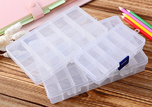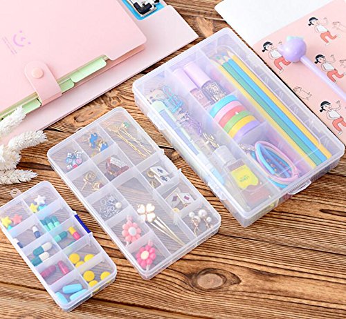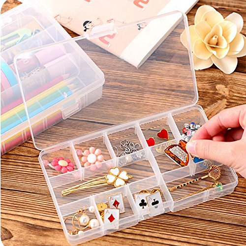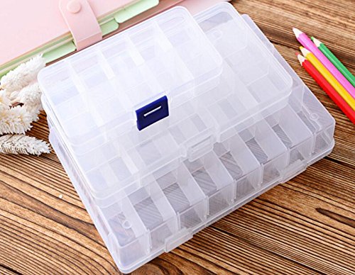 -. Feature : Size: 17.3*9.8*2.2 cm/6.8*3.9*0.9 inches / 15 grids hard plastic storage box organizer,simple and practical / Perfect for storing jewelry,earring,rings,beads,nail decoration,fishhook,pencils and other mini cosmetics / Removable Dividers:The gird inside the box can be moved,adjust the dividers to create your own size compartments.It is adjustable to create from 3 to 15 compartments / Can also be used to store a variety of pills and a variety of small drugs