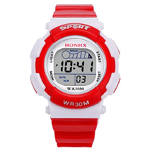 -. Title : HONHX Kids Student Jelly Silicone Band Sports Alarm Date Luminous Digital Wrist Watch -Red