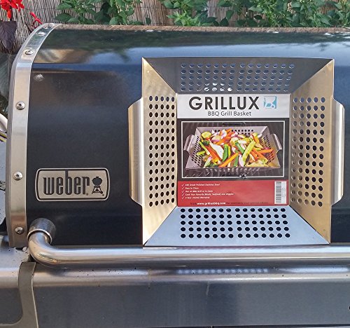 - Title : BBQ Vegetable Grill Basket - Use as Wok, Skillet, or Smoker - Durable 430 Grade Stainless Steel - Professional Cookware - Barbeque Fish & Diced Meat - by Grillux