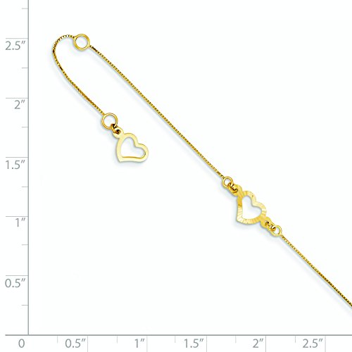-. Title : Roy Rose Jewelry 14K Yellow Gold Adjustable Fancy Heart Anklet ~ Length 9'' inches
