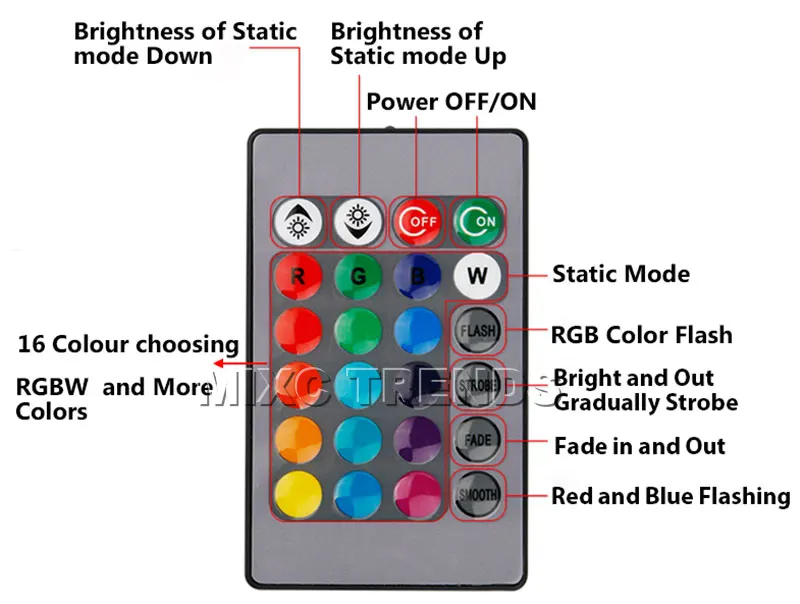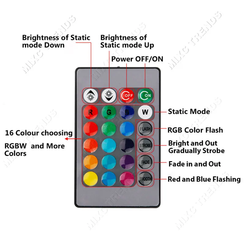 Remote:16 Color change,4 flash strobe modes
