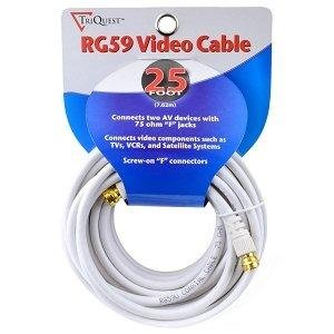 Studio : Sela Publisher : Sela Binding : Personal Computers Product Description Connect your TV to a cable box or satellite receiver with the TriQuest 5625W Coaxial Video Cable! This high quality TriQuest 5625W RG59 Coaxial Video Cable provides 25-feet of connectivity and comes equipped with 75 ohm, gold-plated coaxial RF male to male "F" connectors for maximum signal transfer! Hook it up with the 25-foot TriQuest 5625W Coaxial Video Cable. Order now! Features/Specifications:. 25-foot TriQuest 5625W RG59 Coaxial Video Cable General Features:. White color. 25-foot length. RG59 video cable. Connect two AV devices with 75 ohm "F" jacks. Gold-plated coaxial RF male to male "F" connectors for maximum signal transfer. For TV and other components such as a Satellite receiver or cable box Package Includes:. 25-foot TriQuest 5625W RG59 Coaxial Video Cable Additional Information: Notes:P/N: 5625WUPC: 0 86844 05625 0Product Requirements:. TV, Satellite/Cable receiver with "F" coaxial connector 0