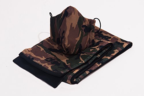 -. Feature : M11 Classic Camo Mask Scarf Set protects you in style! / Respiratory protection from dangerous airborne particles - allergens, germs, smoke, pollen, haboobs, dust, pet dander, flu, cold and other pollutants that can cause or irritate bronchitis, respiratory illness, weakened immune systems, COPD and asthma. / Our masks also provide anti-bacterial and hypo allergenic qualities that others can't. Our M.E.R.V. 11 advanced pharmacuetical grade filter sandwiched between the inner and outer layers adds an additional and most distinctive level of protection from molecule size pollutants that pose the greatest risk! / Uses: Outdoors, traveling, wood working, general construction, remodeling, painting, grooming, power washing, sweeping, snow plowing, leaf blowing and edge trimming, lawn mowing, pet grooming, sanding, drywalling, public areas, smokey atmosphere, in the yard, attic, garage and basement. / Your first line of defense - fashionable, comfortable, ECO friendly, washable, re-usable and made in the U.S.A. Made of Eco friendly fabrics. Outer: Bamboo Cotton Feather Jersey - 70% Bamboo (Viscose Rayon)/30% Cotton. Inner: 66% Bamboo/28% Cotton/6% Spandex. Size: Teen - Adult