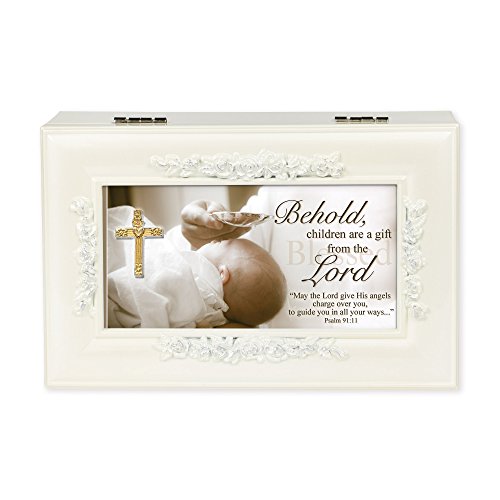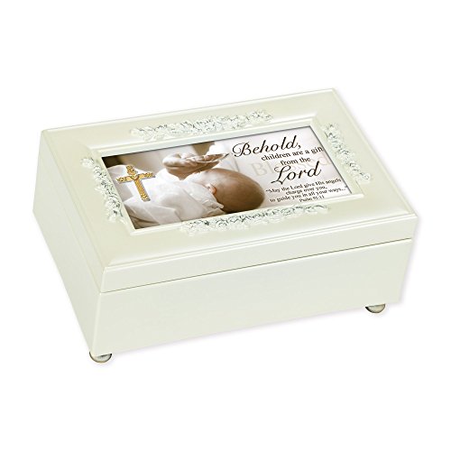 Gift From the Lord Baptism Cream Pearlescent Jewelry Music Box Plays Tune- Jesus Loves Me