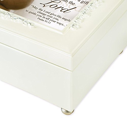 Hinged lid will stay open when looking for treasures and jewelry. Replace artwork with a 4.5 x 2.25 inch personal photo; Features scripture from Psalm 91:11