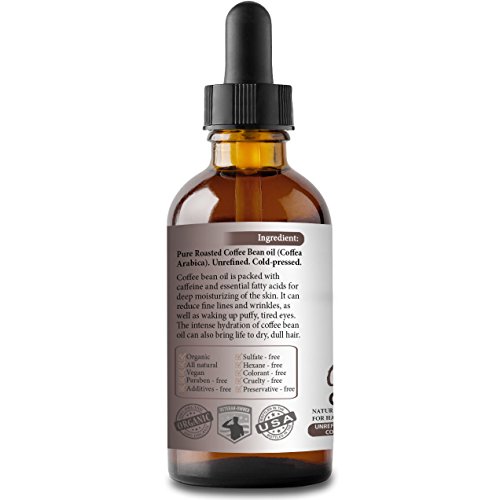 Like a shot of espresso for your skin, coffee bean oil will leave you feeling reinvigorated and bright. Our organic coffee bean oil is packed with caffeine and essential fatty acids for deep moisturizing of the skin, and this powerful combination can reduce fine lines and wrinkles, as well as waking up puffy, tired eyes. Its anti-inflammatory properties can help calm acne-prone skin. The intense hydration of coffee bean oil can also bring life to dry, dull hair.