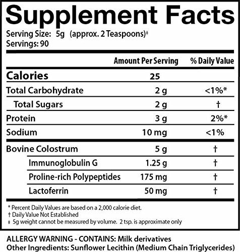 HIGH QUALITY COLOSTRUM - Made from grass fed, Grade A, dairy cows that are certified healthy, BST, BSE and antibiotic-free. Certified cGMP, Kosher, and Halal.