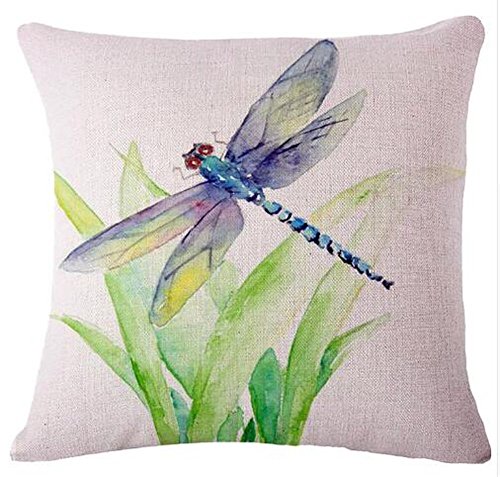 Ink painting the animal Dragonfly Cotton Linen Throw Pillow covers Case Cushion Cover Sofa Decorative Square 18 inch (Dragonflies and grass)