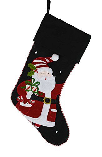 Christmas Holiday Black Stocking with Embroidered Detailed Santa Design - 17" x 10"