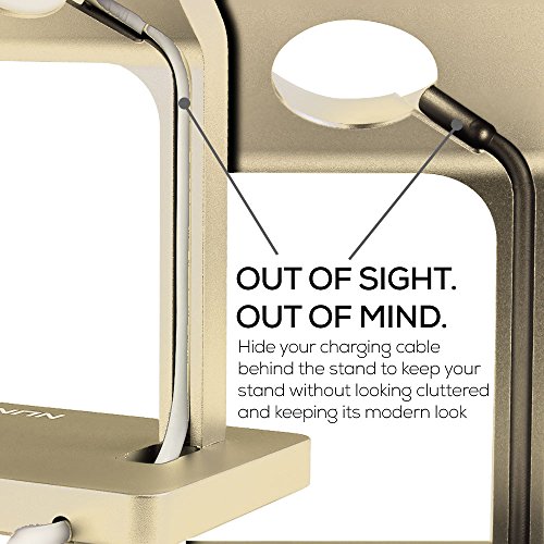NuNu Oculus Natural Aluminum Series Apple Watch Stand The NuNu Oculus Natural Aluminum Series Apple Watch Stand is designed for simplistic style and easy functionality. The unique design assimilates the apple watch and phone in one single sleek product to provide the best of efficacy. Its clean visual design with a raised structure enables a clear view of your apple watch presentation. Our thoughtfully designed features allow all operations on the apple watch to be performed unimpeded especially during charging, built with a silicone circle to protect your apple watch charger perfectly. Carefully designed rubber bottom supports and prevents the device from slipping around once placed on a table surface.