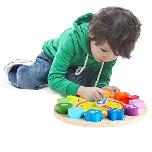 Movable hour and minute hand, was marked by different colors and words, which is very clear and easy for kids to tell, a good choice for portable travel toy, birthday present and Christmas gift