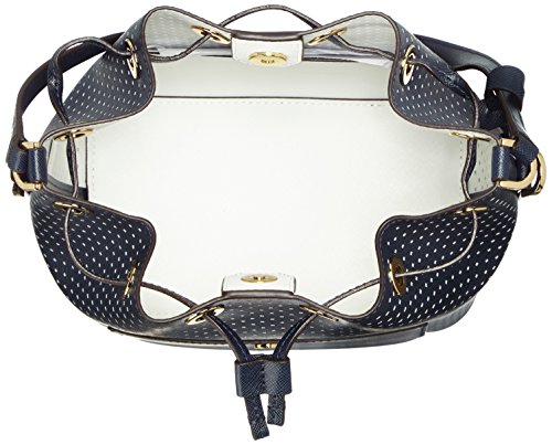 -. Brand : Michael Kors -. Department : women's -. Feature : Perforated bicolor double Saffiano leather / Interior features 1 open pocket / Exterior features gold-tone (Navy, Sunflower, Optic White, Black) or silver-tone (Dove) hardware / 11"L single handle; 19"-23"L adjustable long strap / 10" W x 9-1/4" H x 5-1/4" D -. ProductGroup : Shoes -. ProductTypeName : HANDBAG -. Size : Medium -. Title : MICHAEL Michael Kors Greenwich Medium Bucket Bag
